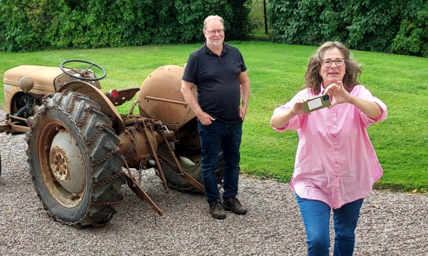 I ladan överlämnade Bettan en glasskål till Katarina och Göran Groth som tack från föreningen för deras stora gästfrihet. och för att de tagit emot oss och visat oss Horn där Anna och Maths Stenhammar bodde under några år.